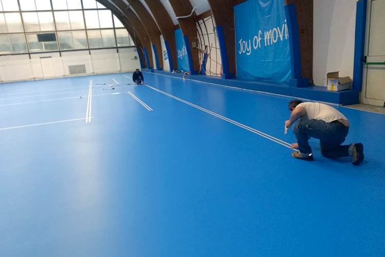 Fase 7: Colocación cintas para delimitar espacios reservados a las líneas reglamentarias de las disciplinas previstas